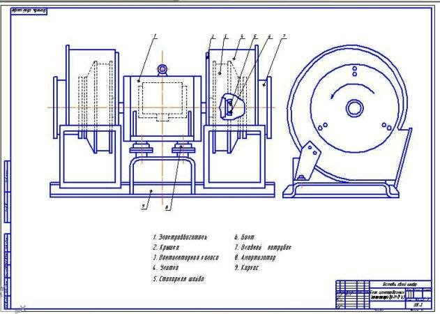 В комплект входит чертеж блока вентиляторов Ц8-19 № 6,5 на формате А1, выполненный в программе Компас