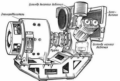 Двухступенчатые компрессоры (рис. 72) имеют один или два цилиндра низкого и один цилиндр высокого давления.