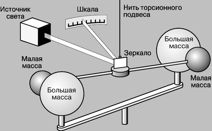 Генри Кавендиш с гордостью говорил: "Я взвесил Землю!" Он действительно сделал это. Для любого груза массой m с помощью динамометра нетрудно найти силу тяжести. Но сила тяжести - это и есть сила всемирного тяготения между этим грузом и Землёй. А расстояние между телами - в формуле подразумевается, что это расстояние между центрами этих тел - можно считать равным радиусу Земного шара. И вот что получается: