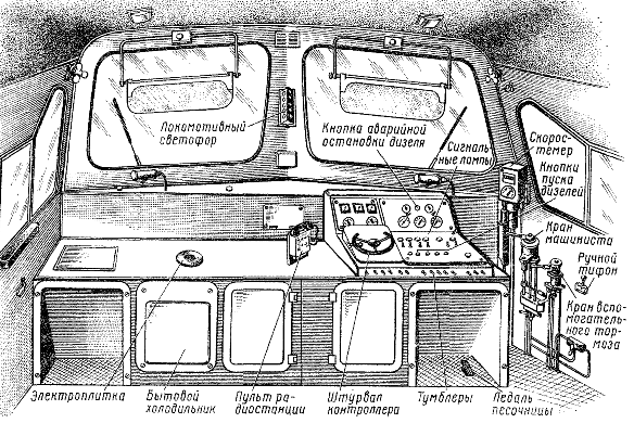 Тепловоз — это второй дом машиниста. Здесь на очень ответственном посту днем и ночью он проводит много непрерывных часов за работой. Конструкторы стремятся создать локомотивной бригаде хорошие условия для труда.